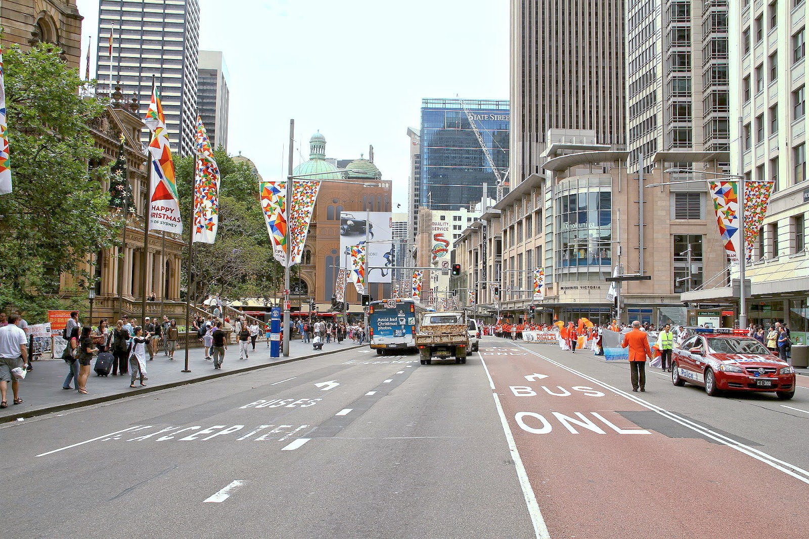 A Police escort assisted marchers celebrating International Human Rights Day as it moved up George Street. Our banners can be seen in many of the photographs taken.